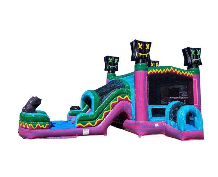 Perfect for birthday parties, school events, or backyard gatherings, this unit balances excitement and safety: low-profile entry points, mesh side panels for adult supervision, and durable materials meant to handle repeated rental use. Its gamer-inspired look brings an energetic, modern vibe that fits competitive or themed celebrations. Easy to supervise and a guaranteed crowd-pleaser, the Level Up Gamer Dual Lane Combo keeps kids engaged while offering reliable durability for rental operators.